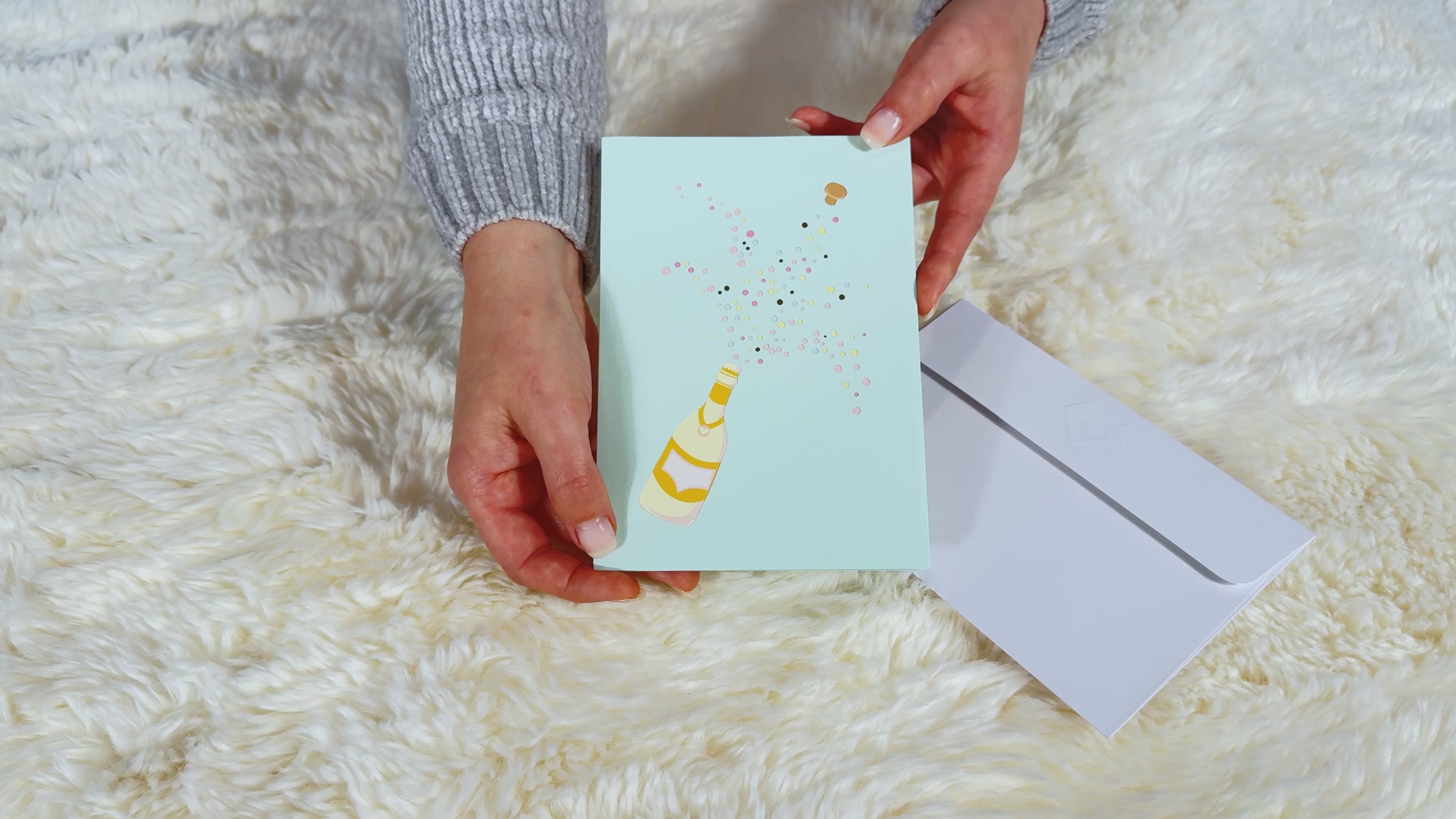 Größe: Die Pop-Up-Karte „Champagner Plopp“ misst 127 mm x 178 mm.